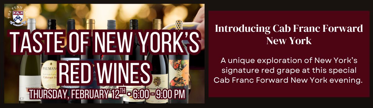 Join us for a unique exploration of New York’s signature red grape at this special Cab Franc Forward New York evening. The event will feature all eight founding wineries, each pouring their current Cabernet Franc releases. -