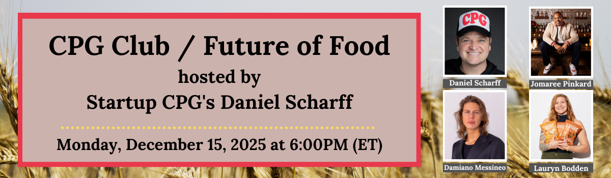 Hosted by Daniel Scharff, WG’09, founder of Startup CPG, join us for an inaugural CPG Club meetup where you will hear from a panel of exciting CPG entrepreneurs while creating wonderful connections amongst our members. -